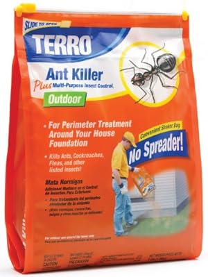 Terro outdoor ant killer plus is a granular barrier protection that does not require chemical spreader or broadcaster. easy-to-use shaker bag allows you to treat the perimeter of your home without handling the product. ideal as part of a 2-step ant control process. use in conjunction with terro liquid ant baits to eliminate ants inside and prevent outdoor ants from reinfesting. for outdoor use. 3-pound shaker bag.